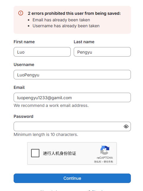 shows that luopengyu1233 at gmail.com has already been taken.[image: image.png]
